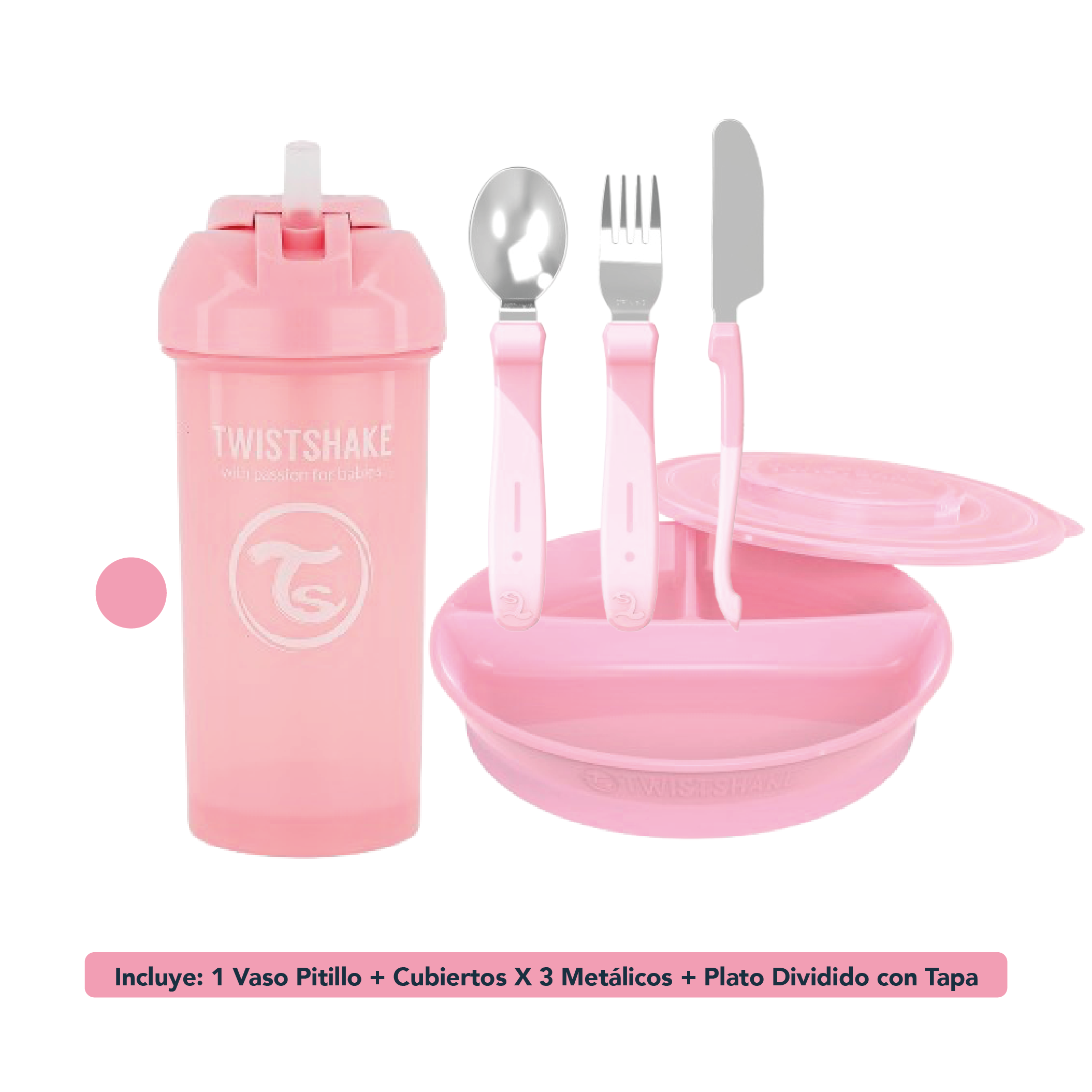 ✔️ Incluye: 1 vaso con pitillo + 1 set de cubiertos metálicos + 1 plato dividido